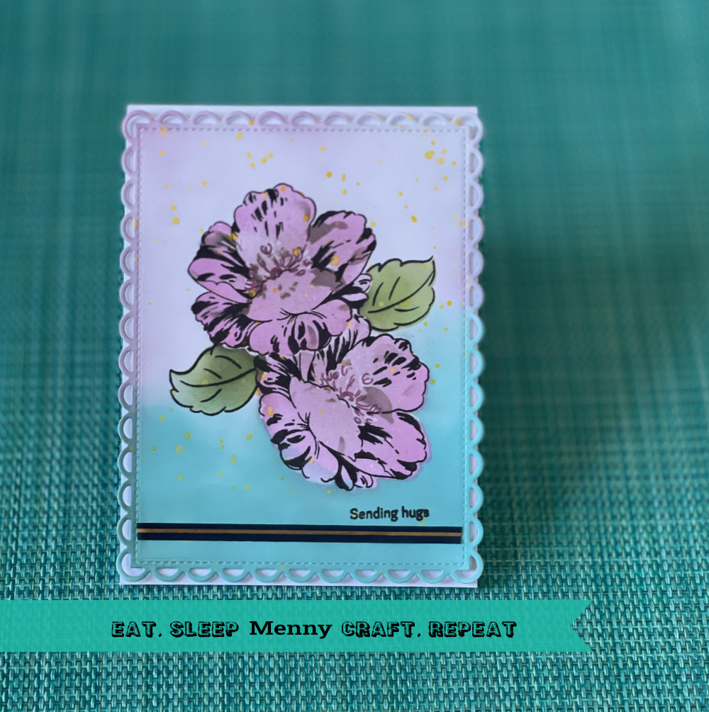 Um den Abdruck so zu stempeln, brauchst du nur Maskingtape. Diese Technik finde ich immer wieder genial. Auch das stempeln ist kein Hexenwerk, mit der hellsten Farbe beginnen und dann nach und nach die Akzente setzten.
