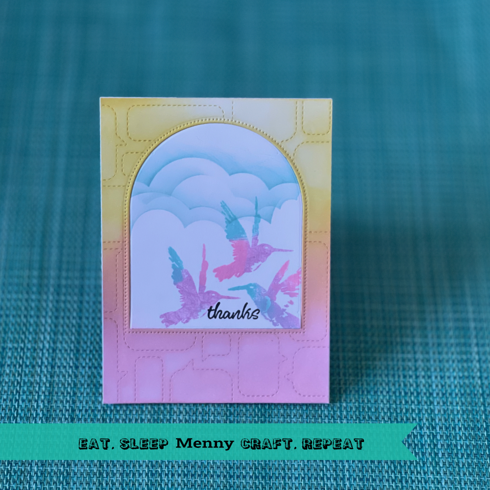 Die Wolken kann man superleicht mit einer Stencil gestalten. Ich habe eine von Lawn Fawn verwendet. Die Hintergrundstanze ist auch von Lawn Fawn.